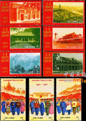 在1967年,我國(guó)郵電部發(fā)行了一套郵票,紀(jì)念毛主席創(chuàng)建井岡山革命根據(jù)地40周年。1967年6月,郵票設(shè)計(jì)人員開(kāi)始郵票設(shè)計(jì)。8月上旬郵票圖稿設(shè)計(jì)完并報(bào)送中央有關(guān)部門(mén)審定之后,郵票圖稿經(jīng)郵票廠(chǎng)制版并打出樣票?!皠?chuàng)建井岡山革命根據(jù)地40周年”郵票編號(hào)為“文5”,郵票名稱(chēng)為“紀(jì)念毛主席創(chuàng)建井岡山革命根據(jù)地四十周年”,發(fā)行日期為1967年10月1日,全套4枚,面值均為8分,影寫(xiě)版。第一枚郵票圖案為毛主席和林彪在天安門(mén)城樓上。第二枚郵票圖案為毛澤東及其一行在井岡山會(huì)師。第三枚是毛主席語(yǔ)錄:“槍桿子里面出政權(quán)”。第四枚是毛主席詩(shī)詞:西江月?井岡山(一九二八年秋):“山下旌旗在望,山頭鼓角相聞。敵軍圍困萬(wàn)千重,我自巋然不動(dòng)?!碑?dāng)打出樣票準(zhǔn)備付印時(shí),郵票廠(chǎng)接到上級(jí)有關(guān)部門(mén)的通知:“紀(jì)念毛主席創(chuàng)建井岡山革命根據(jù)地40周年”郵票,取消發(fā)行,郵票印樣全部銷(xiāo)毀,于是,這套紀(jì)念郵票被銷(xiāo)毀,在銷(xiāo)毀過(guò)程中流失了一部份,但數(shù)量極少,十分珍貴。據(jù)有關(guān)雜志報(bào)道,1981年美國(guó)一家郵商在日本東京舉行郵票拍賣(mài)時(shí),曾在目錄上刊出過(guò)這套郵票中的第一枚。1997年11月21日北京郵星貿(mào)易總公司在上海舉行的拍賣(mài)會(huì),1枚紀(jì)念毛主席創(chuàng)建井岡山革命根據(jù)地40周年郵票,上品,底價(jià)150萬(wàn)元(人民幣),未拍出。