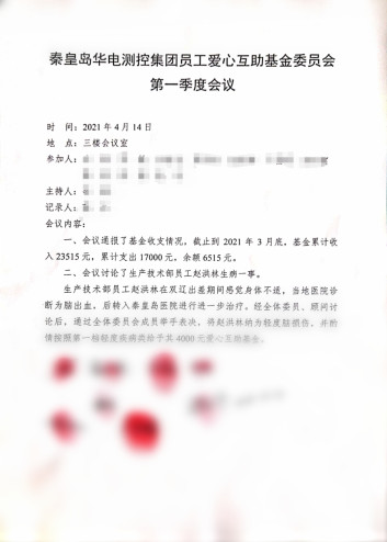 2021年4月14日,秦皇島華電測(cè)控集團(tuán)有限公司在三樓會(huì)議室召開了愛心互助基金委員會(huì)第一季度會(huì)議。