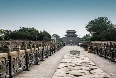 2003年3月29日,為了展示中國歷史悠久的橋梁建筑藝術,國家郵政局發(fā)行了《中國古橋-拱橋》特種郵票,由張鴻斌設計,北京郵票廠印制。(4-3)為“盧溝橋”,面值80分。盧溝橋位于北京市西南約15公里的永定河上。為一座多孔聯(lián)拱大石橋。始建于金大定二十九年(1189年),明昌三年(1192年)建成。初名“廣利橋”,永定河舊稱盧溝河,橋也以“盧溝”命名。橋長266.5米,寬9.30米,下分11個涵孔。為雁翅形