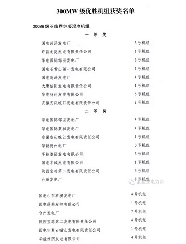 【重磅】2014年全國(guó)火電300MW級(jí)機(jī)組競(jìng)賽對(duì)標(biāo)獲獎(jiǎng)名單