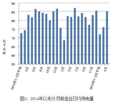 1-4月份,全國制造業(yè)用電量9225億千瓦時(shí),同比下降0.9%,增速比上年同期低0.7個(gè)百分點(diǎn)。4月份,全國制造業(yè)用電量2557億千瓦時(shí),同比增長(zhǎng)0.8%;制造業(yè)日均用電量85.2億千瓦時(shí)/天,分別比上年同期和上月增加0.7億千瓦時(shí)/天和9.2億千瓦時(shí)/天。