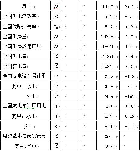 全國電力工業(yè)統(tǒng)計(jì)數(shù)據(jù)一覽表