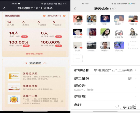 此次運動會是由河北省總工會牽頭主辦的“中國夢·勞動美—喜迎二十大·建功新時代”職工“云”上運動會,市級、區(qū)級總工會逐級組織基層單位工會共同參與。“云”上運動會,充分利用網(wǎng)絡技術和“云”上手段,多渠道普及推廣科學健身知識,開展大眾普適性健身項目,結合常態(tài)化疫情防控工作實際,讓職工“云”健身成為生活常態(tài)。自活動開展以來,華電測控職工每天達標率100%,大家每天任意選擇6項運動(AI跳繩100次、AI運動場完成4項、健步走6000步以上、騎行6公里以上、健身20分鐘、跑步3公里以上)中的1—2項,完成即為達標。