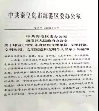2021年,中共秦皇島市海港區(qū)委、區(qū)政府組織申報(bào)年度文明單位和文明個(gè)人等,經(jīng)過(guò)推薦、申報(bào)、評(píng)審,近期獲悉秦皇島華電測(cè)控設(shè)備有限公司連續(xù)兩年榮獲海港區(qū)文明單位稱(chēng)號(hào),公司黨支部書(shū)記、副總經(jīng)理劉喆林同志被評(píng)為海港區(qū)文明職工。