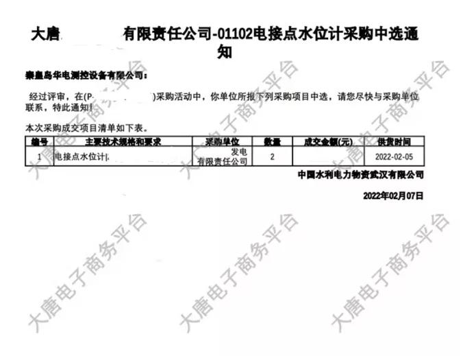 2月7日,春節(jié)過后上班第一天,公司收到了來自大唐某電廠發(fā)來的中標(biāo)喜訊,我公司HDSC系列電接點(diǎn)水位計(jì)成功中標(biāo),公司迎來了開門紅,開啟了公司虎年新篇章!