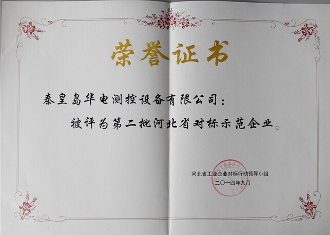 2014年9月,公司被河北省工業(yè)信息化廳工業(yè)企業(yè)對標行動領(lǐng)導(dǎo)小組認定為第二批河北省對標(技術(shù)創(chuàng)新類)示范企業(yè),并于近日頒發(fā)了榮譽證書和牌匾。