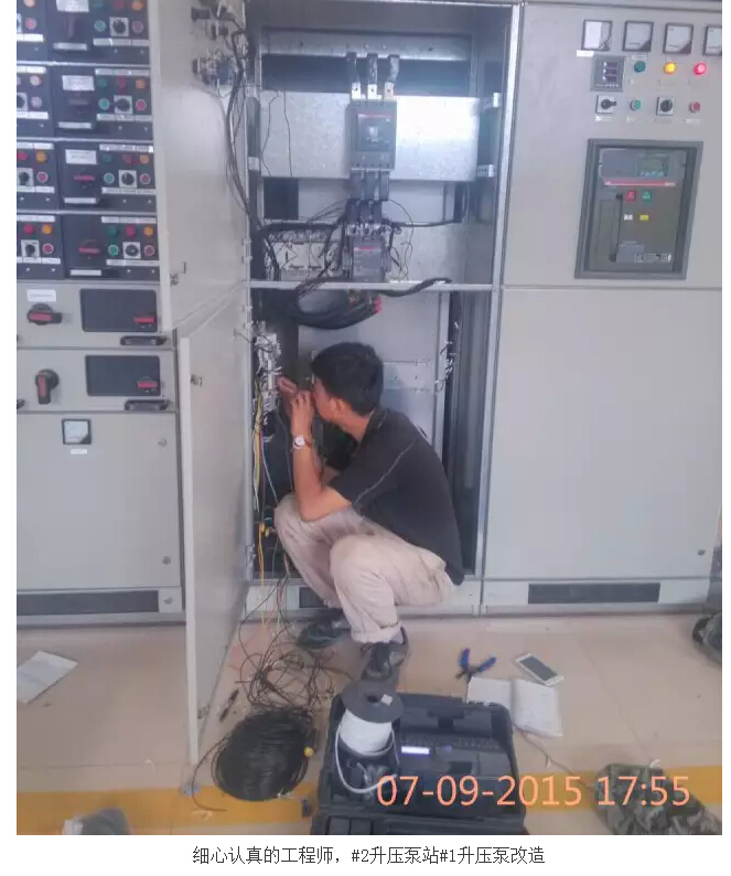 同時(shí)在同一地點(diǎn)的另一施工現(xiàn)場(chǎng),在公司總工程師、工程部經(jīng)理姜崇明領(lǐng)導(dǎo)下,水廠的無(wú)人化值守程控部分改造緊鑼密鼓的推進(jìn)。#2升壓泵站的變頻自動(dòng)供水、節(jié)水泵站遠(yuǎn)程自動(dòng)控制、二級(jí)泵站供水閥自動(dòng)、全廠排污坑自動(dòng)排水、取水泵站取水泵和液控閥聯(lián)動(dòng)自動(dòng)供水、全廠視頻監(jiān)控系統(tǒng)等等,一個(gè)又一個(gè)的技術(shù)難點(diǎn)被攻克,一個(gè)又一個(gè)的系統(tǒng)被優(yōu)化,得到的是客戶滿意的微笑,收獲得是公司員工的成長(zhǎng)。