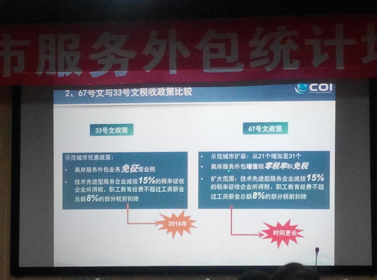 通過本次培訓清晰了什么是服務外包;服務外包的分類:2014年現(xiàn)行統(tǒng)計標準分為三個門類(ITO信息技術外包、BPO業(yè)務流程外包、KPO知識流程外包),九個大類(軟件研發(fā)外包、信息技術服務外包、運營和維護服務、內(nèi)部管理外包服務、業(yè)務運營外包服務、供應鏈外包服務、商務服務外包、技術服務外包、研發(fā)服務外包),35個中類;服務外包與服務貿(mào)易之間的關系等。服務外包產(chǎn)業(yè)的發(fā)展在國家政策《國務院關于促進服務外包產(chǎn)業(yè)加快發(fā)展的意見》國發(fā)[2014]67號文件(離岸服務外包增值稅零稅率和免稅,擴大范圍:技術先進型服務企業(yè)減按15%的稅率征收企業(yè)所得稅,職工教育經(jīng)費不超過工資薪金總額8%的部分稅前扣除)的支持力度下,不斷成長提升。通過建立的有效溝通和營銷渠道,構建交易平臺,積極走出去,尋求與國際接軌的走向國際的策略,借助云計算、大數(shù)據(jù)等新技術融合共同發(fā)展。最后,主辦方秦皇島市商務局代表做了總結發(fā)言,還為大家精心準備了冷餐,就餐的同時大家相互交流,彼此相互了解。