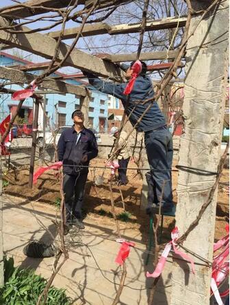 正值春暖花開、草長(zhǎng)鶯飛之際,公司花園一派生機(jī)勃勃的景象,在公司黨支部書記兼副總經(jīng)理劉劍鋒的帶領(lǐng)下,張勇清、尹新磊、劉冬建、任有志、張靜于周六下午來(lái)到公司進(jìn)行葡萄架的搭建和培植,并翻土疏松,為樹木植被澆水。