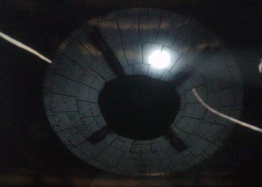 未安裝疏松機(jī)的粉倉(cāng)(倉(cāng)壁板結(jié)大量鐵粉)