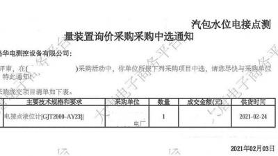 2021年2月3日,我公司在大唐集團(tuán)安徽某電廠的電接點(diǎn)液位計(jì)改造項(xiàng)目的競(jìng)標(biāo)中,憑借強(qiáng)大的綜合實(shí)力以及過硬的產(chǎn)品質(zhì)量,通過層層篩選、激烈角逐,以絕對(duì)的優(yōu)勢(shì)順利中標(biāo)。 該項(xiàng)目采用公開招標(biāo)方式,我公司自收到招標(biāo)信More