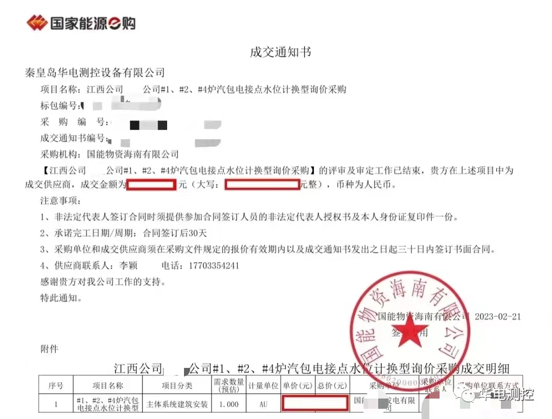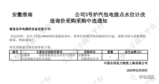 2023年2月9日,秦皇島華電測(cè)控設(shè)備有限公司產(chǎn)品高精度取樣電極傳感器成功中選安徽淮南某發(fā)電公司3號(hào)爐汽包電接點(diǎn)水位計(jì)改造項(xiàng)目。該公司早于2005年就已安裝我公司HDSC-GJT200More
