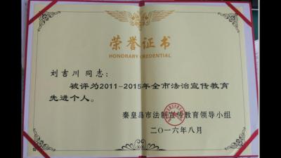 喜訊:秦皇島華電測(cè)控設(shè)備有限公司總經(jīng)理劉吉川先生被評(píng)為“2011-2015年全市法治宣傳教育先進(jìn)個(gè)人”,劉吉川先生作為首個(gè)私營企業(yè)家被評(píng)選上“先進(jìn)個(gè)人”。 2016年11月25日上午召開了全市 “六五”普法總結(jié)暨 “More