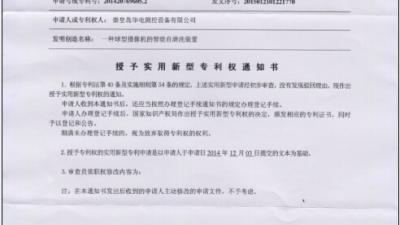 新春臨近,捷報(bào)頻傳! 公司于2014年12月03日提交的“一種球型攝像機(jī)的智能自清洗裝置”專利已被中華人民共和國(guó)國(guó)家知識(shí)產(chǎn)權(quán)局授權(quán)實(shí)用新型專利權(quán)。 本實(shí)用新型公開(kāi)了一種球型攝像機(jī)的智能自清洗裝置,屬More