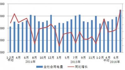 中電聯(lián)發(fā)布2016年1-7月份電力工業(yè)運(yùn)行簡況” 2016-08-241-7月份,全國電力供需總體寬松。受氣溫偏高和上年同期基數(shù)偏低等因素影響,全社會用電量增速同比提高;工業(yè)用電量增速同比提高,制造業(yè)累計(jì)用電增速由負(fù)轉(zhuǎn)正;鋼鐵和有色金屬冶煉行業(yè)用電量持續(xù)負(fù)增長,拖累高載能行業(yè)用電量增More